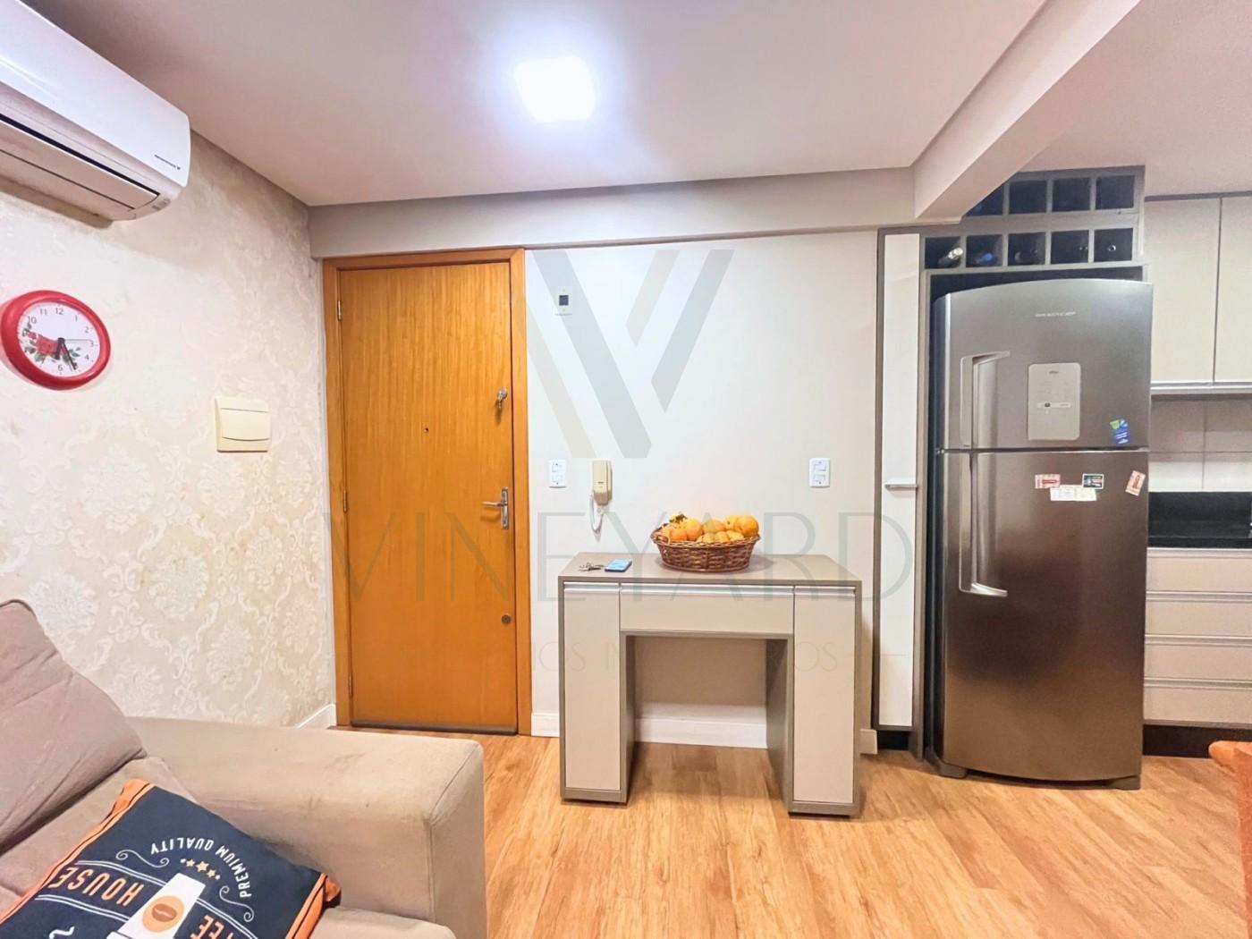 Venha conhecer esse lindo apartamento, com móveis sob medida na cozinha, sala e dormitório de casal.